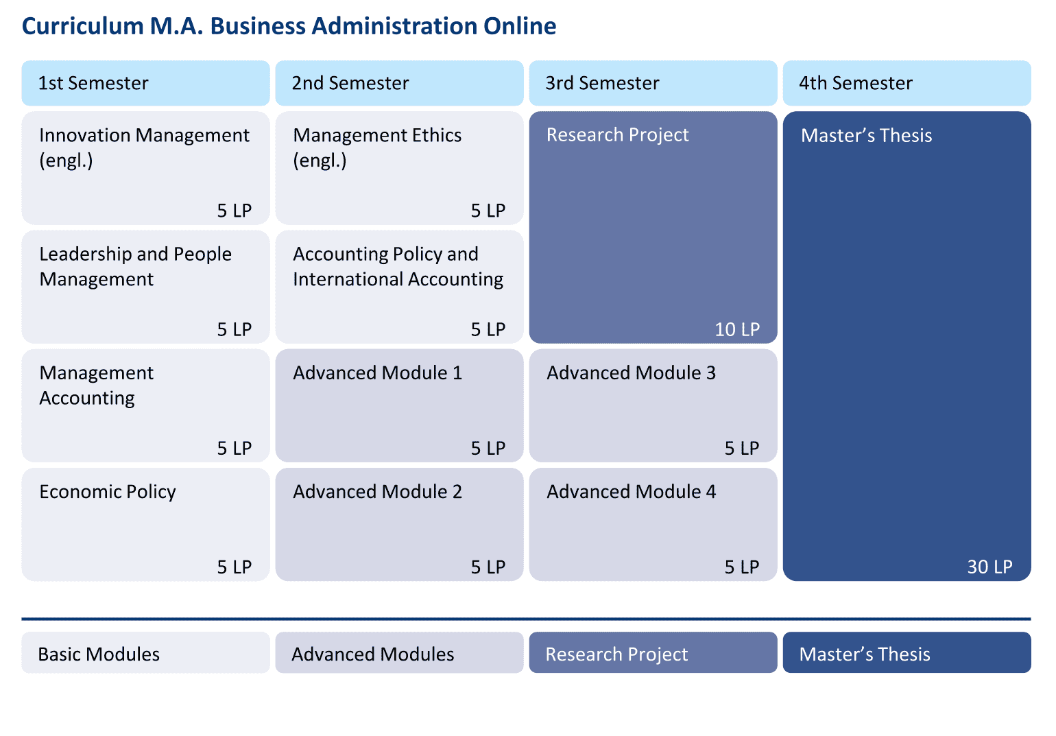 Your online Master's degree programme in Business Administration is consistently designed for flexibility and compatibility. You can customise the intensity of your studies by deciding for yourself how many modules you take each semester. This allows you to combine your studies, career and personal commitments in the best possible way.