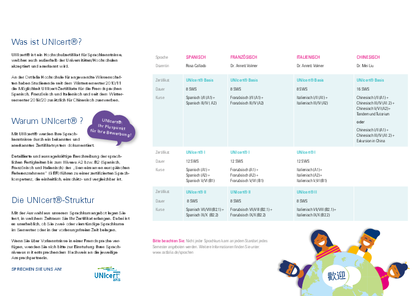 UNIcert® I (= B1 des GER) für Spanisch, Französisch, Italienisch und Chinesisch.