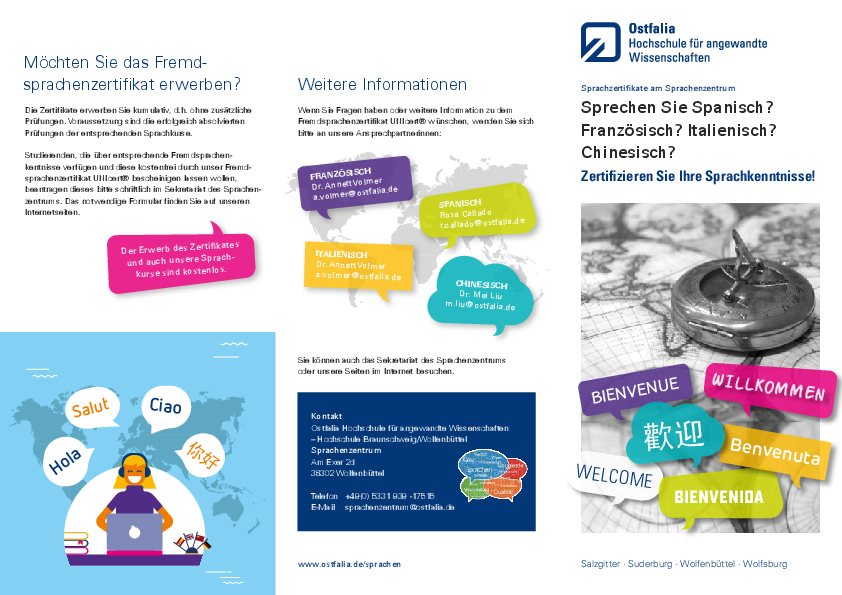 An der Ostfalia Hochschule für angewandte Wissenschaften besteht die Möglichkeit des Erwerbs von UNIcert® der Stufen Basis, I und II.