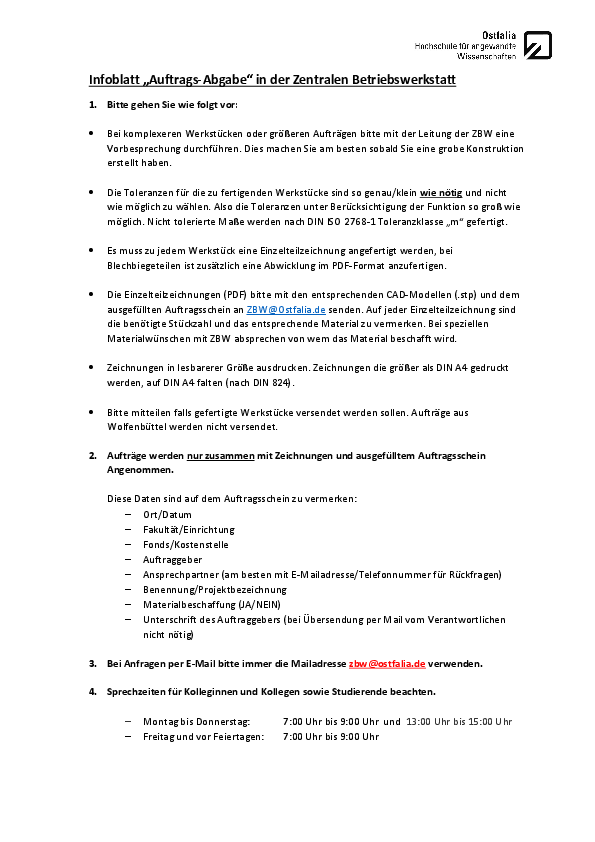 Hinweise zur Auftragsabgabe