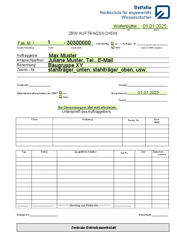 Auftragsschein MUSTER