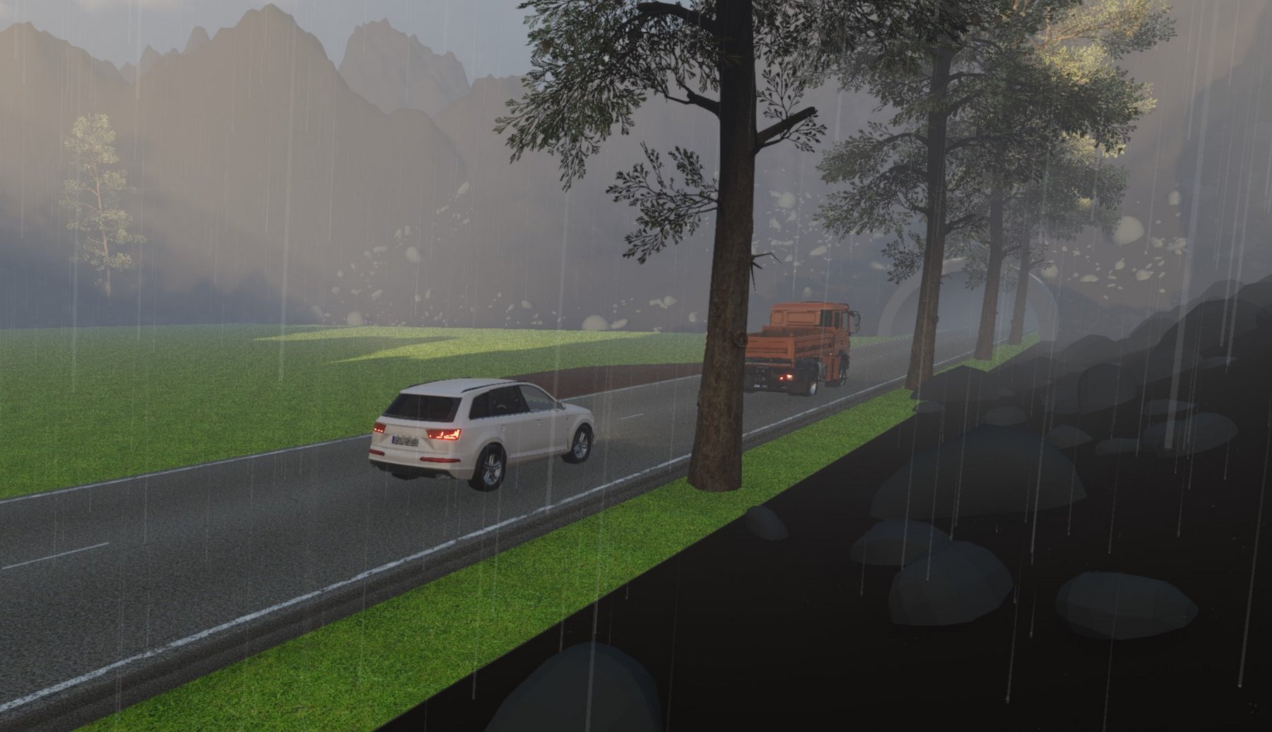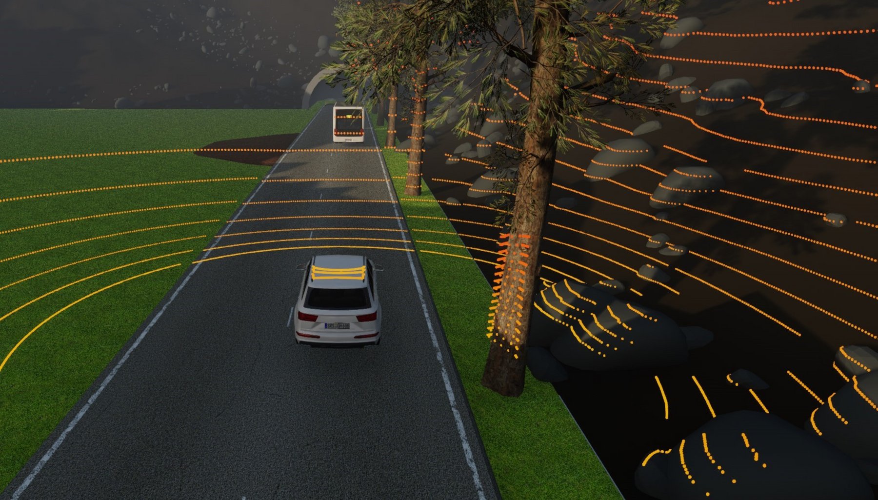 In der Simulationssoftware AURELION werden sensorrealistische Daten von LiDAR-, Kamera- und Radarsensoren in grafischen Umgebungen erzeugt und visualisiert. Mithilfe weiterer Softwaretools werden Fahrvorgänge des Ego-Fahrzeugs und weiterer Verkehrsteilnehmer (z.B. Fußgänger, Radfahrer, PKW) parametriert und in AURELION ausgeführt und visualisiert. Darüber hinaus können witterungsbedingte Störgrößen (z.B. Regen, Nebel, Schnee) in die Simulation integriert werden, um das Sensorverhalten unter nicht-idealen Bedingungen zu anylisieren. Anwendungsgebiete sind u.a. die Validierung von allgemeinen Perzeptionsfunktionen und Fahrerassistenzsystemen.