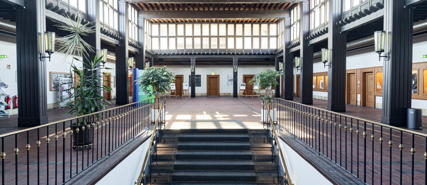In einigen Seminarräumen ist ein Medientisch mit fest integriertem Computer eingebaut. Du kannst den Computer nutzen, um beispielsweise auf deine Server-Laufwerke zuzugreifen, einen USB Stick anschließen und somit deine Dateien herunterladen um damit beispielsweise, auch ohne eigenen Laptop, eine Präsentation starten.