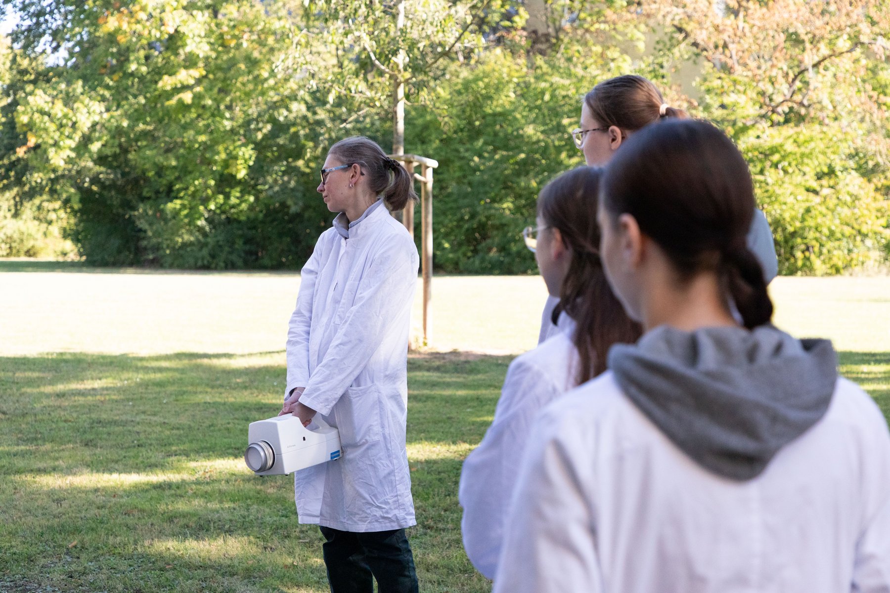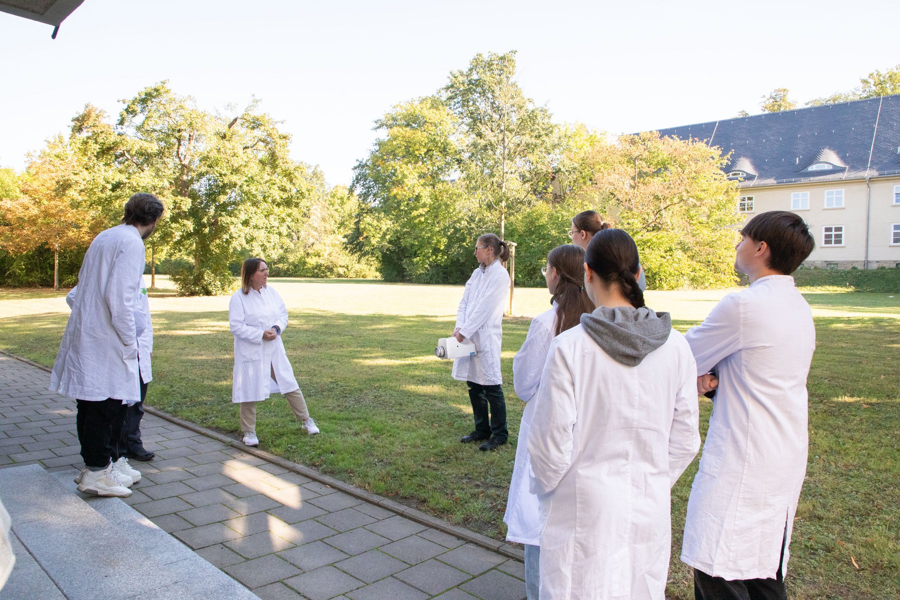 Ein besonderes Highlight war der Workshop zur Luftkeimanalytik, geleitet von der wissenschaftlichen Mitarbeiterin Dipl.-Ing. Silvia Drescher-Hartung (M.B.A.). Dabei erhielten die Schülerinnen und Schüler praxisnahe Einblicke in die Umwelttechnik und die Bioökonomie, unter anderem am Beispiel des Forschungsprojekts Cell2Cell.