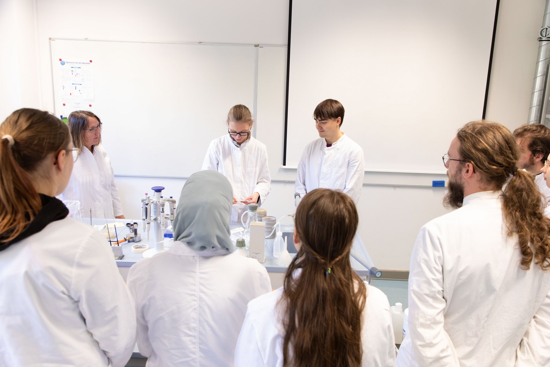Die jungen Gäste zeigten sich besonders beeindruckt von der Ausstattung der Labore. „Die Bioreaktoren waren sehr spannend, besonders der selbstgebaute Airliftreaktor“, resümierte ein Teilnehmer.