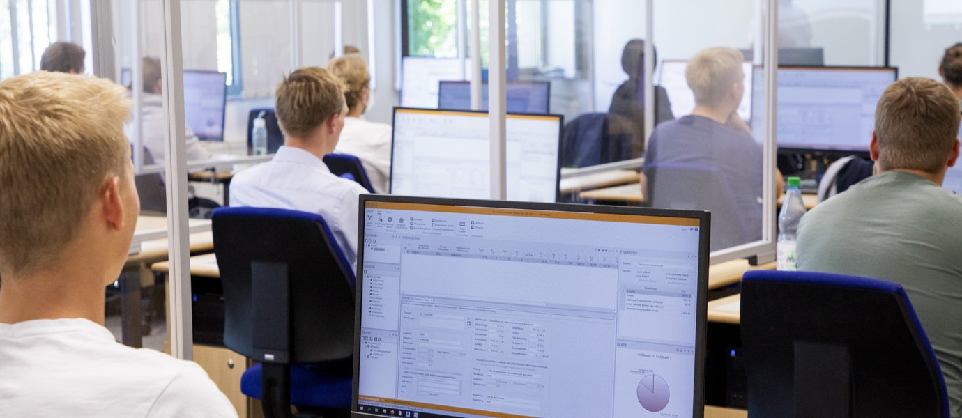- Schwerpunkt Gebäudetechnik: Dabei geht es um die technische Infrastruktur moderner Gebäude und deren nachhaltiger Nutzung, wie der Beheizung, der Belüftung, der Klimatisierung, der sanitären Ausstattung, der Versorgung mit elektrischer Energie sowie der integrierten Steuerung und Regelung von Gebäudefunktionen.